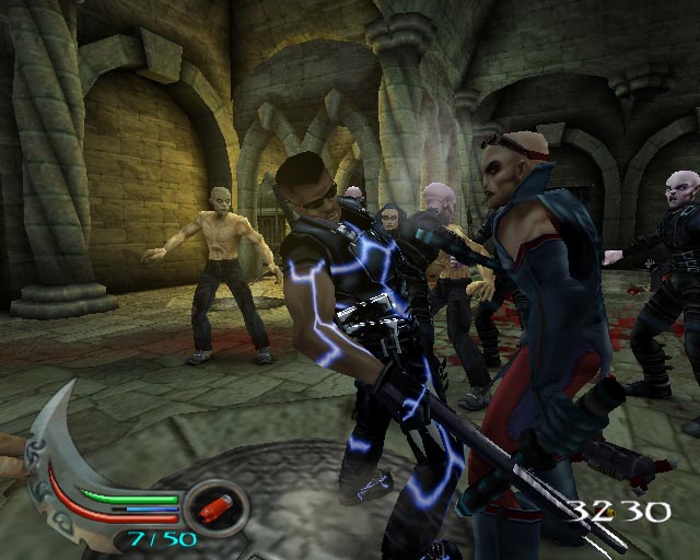 - 360-Degree Combat System ? Players will use special hand-to-hand and weapon attacks to destroy hordes of vampires as they surround Blade in battle. This all-around feature allows the gamer to see what is coming up behind them, so that they can react and attack before it?s too late.