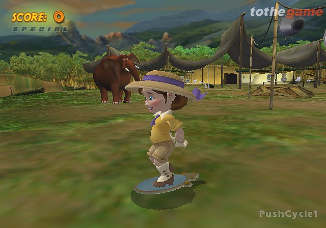 • Skate like the best, incorporating sweet tricks like ollies, rail grinds, spins and other expert balance moves. Try your stuff on skateboards, Victorian mirrors, frying pans and other cool foot rides. Perform your cool skate moves on any of the surfaces in each world, such as grinding on dominoes in Andy’s Room, spinning your board as you jump off trees in Tarzan’s Jungle, and ollieing over bones in the Elephant Graveyard.